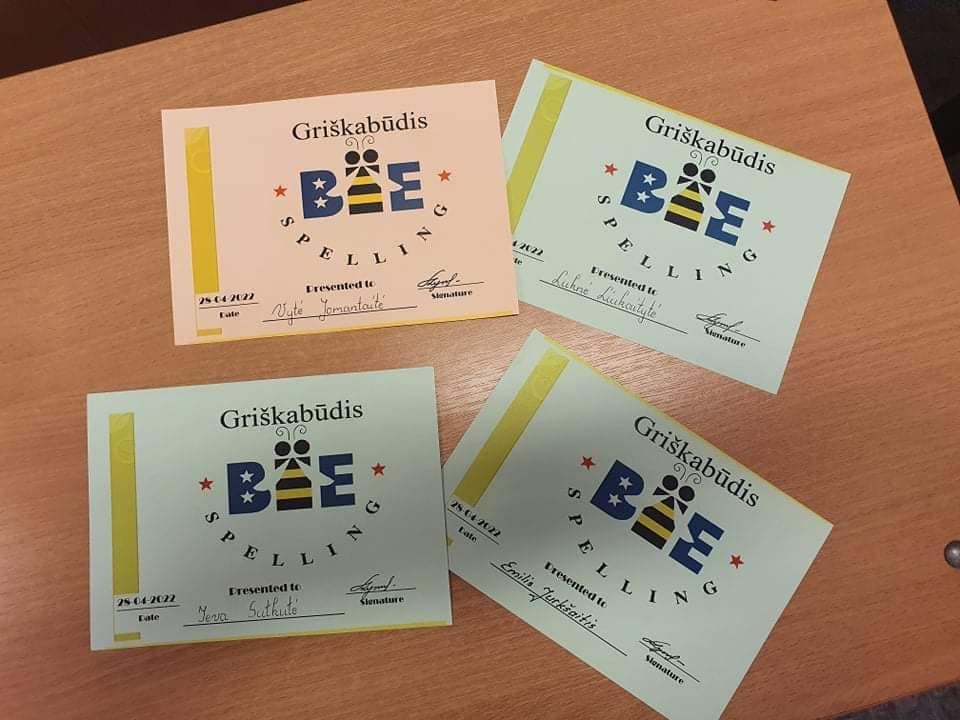Šiandien Griškabūdyje vyko 5-7 klasių „Spelling bee” anglų kalbos konkursas, mūsų mokyklą atstovavo: Vytė Jomantaitė, Ieva Sutkutė, Emilis Jurkšaitis, o taip pat sveikiname Luknę Liukaitytę užėmus III vietą. Mokinius ruošė: Vilija Leveckytė ir Irma Martinaitienė. Mes jumis didžiuojamės